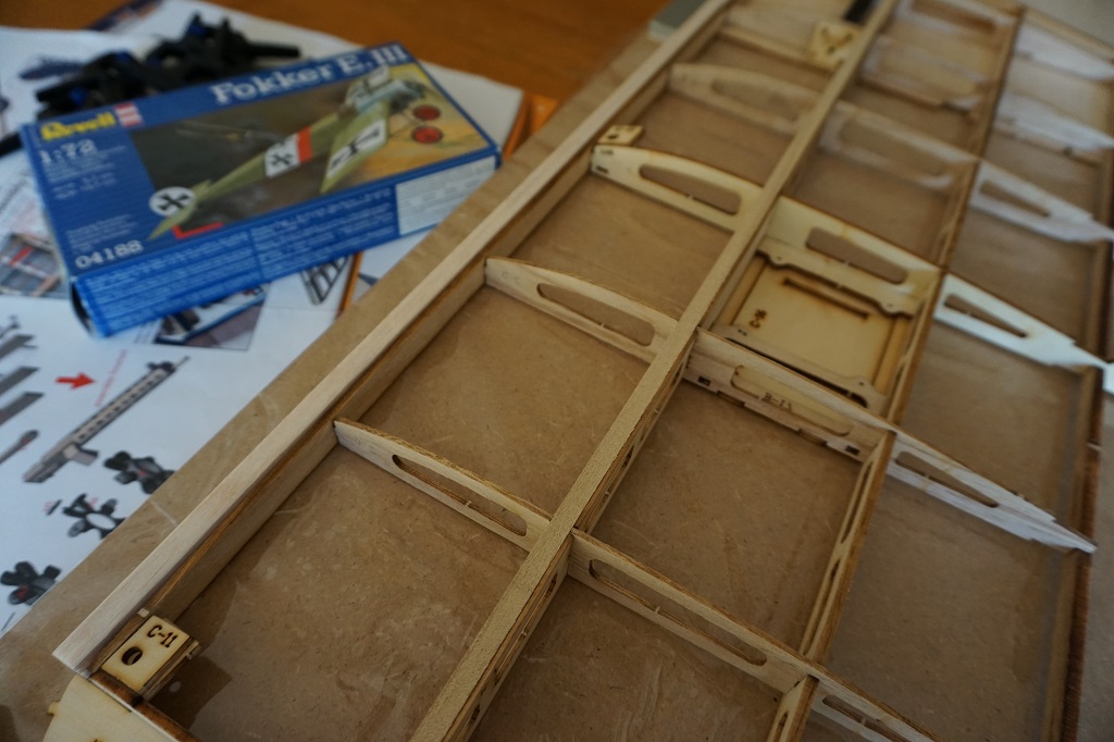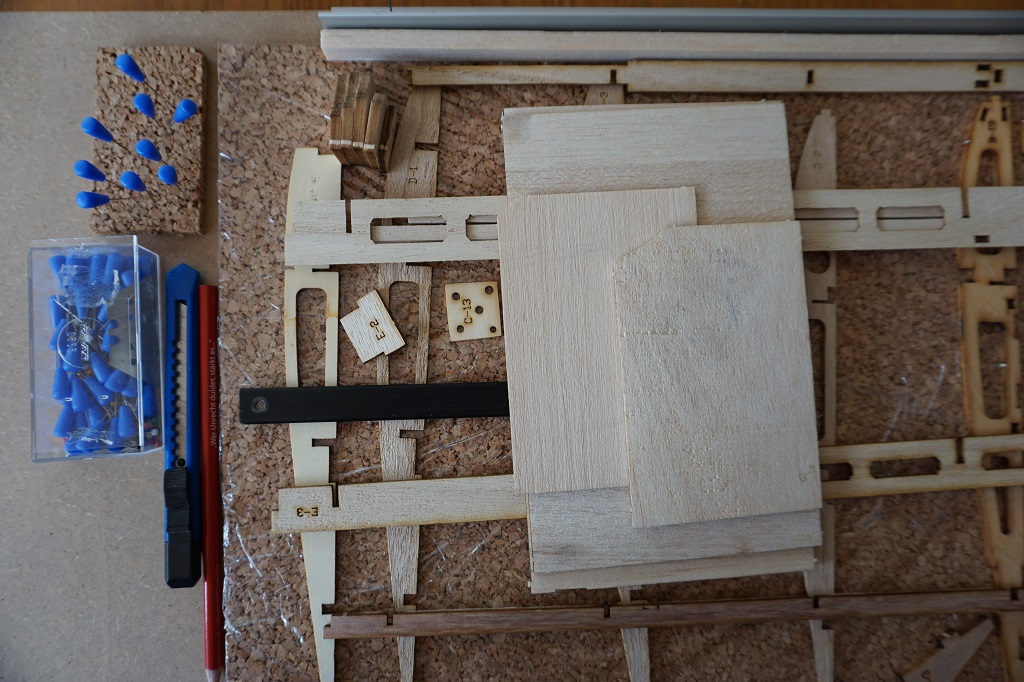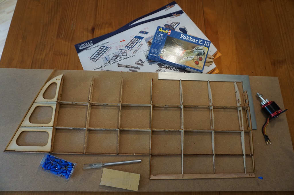 Teile der linken Tragfläche sind aus den Bausatzbrettern