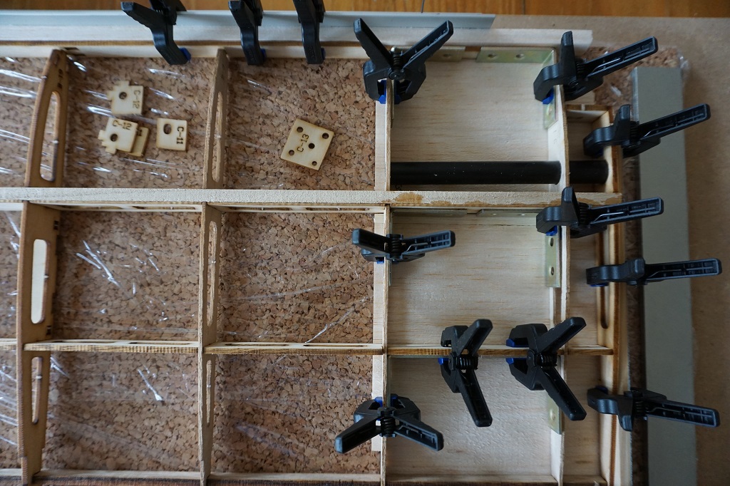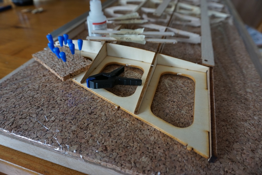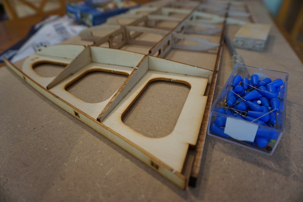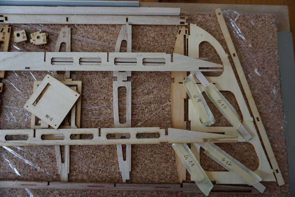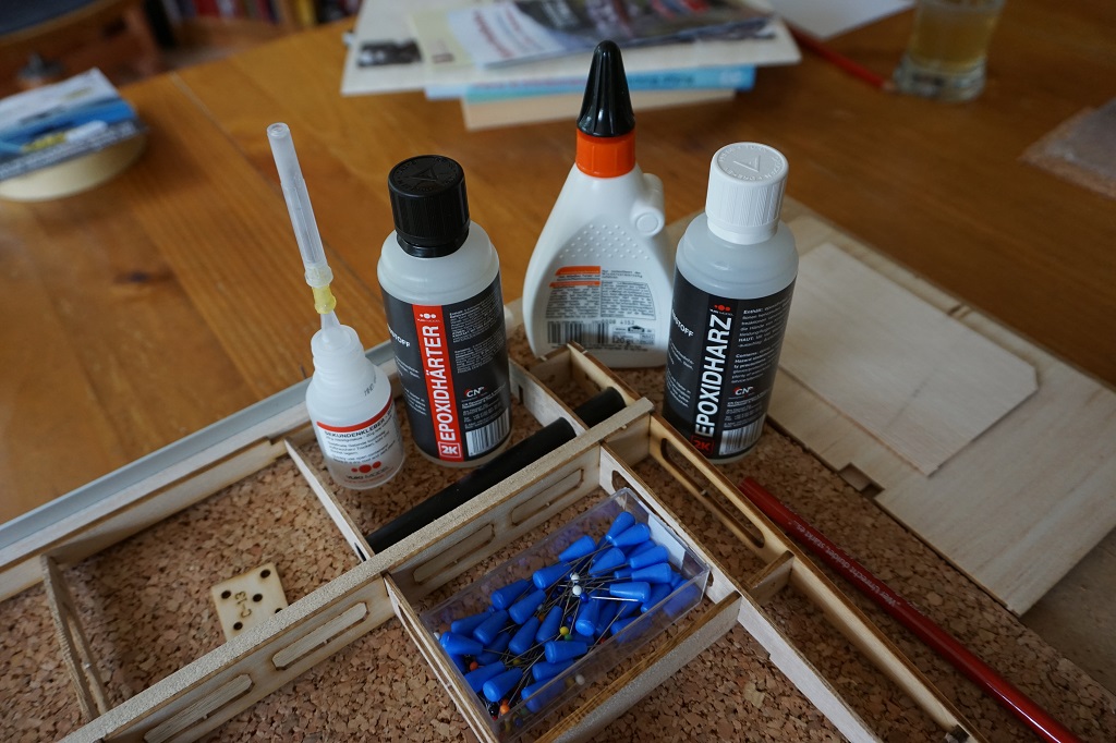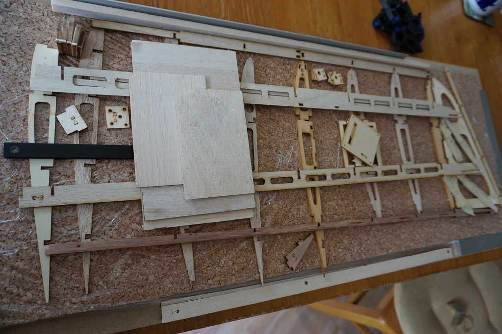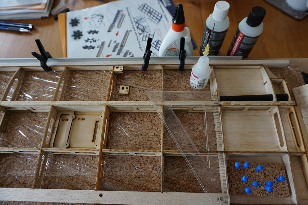 Einzelteile der linken Tragfläche liegen nun zum Kleben bereit