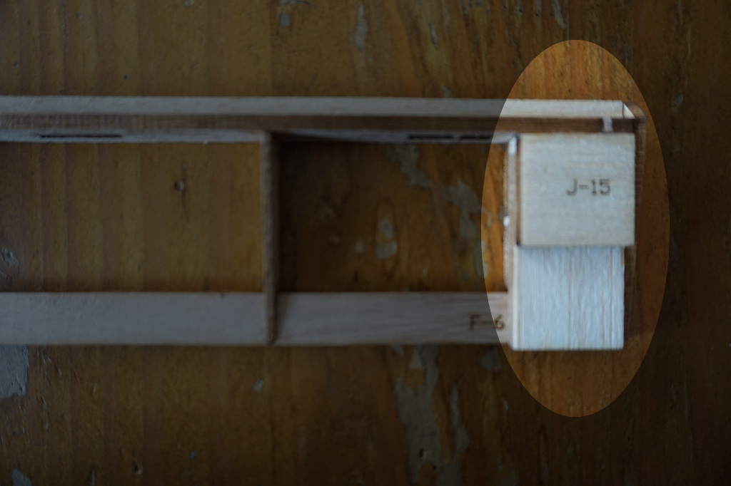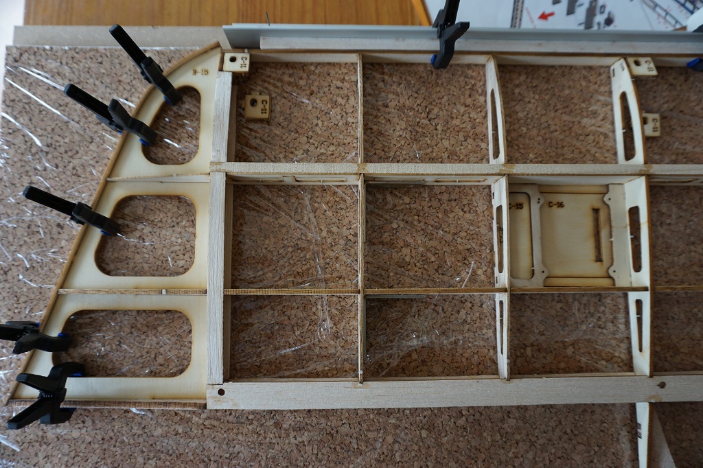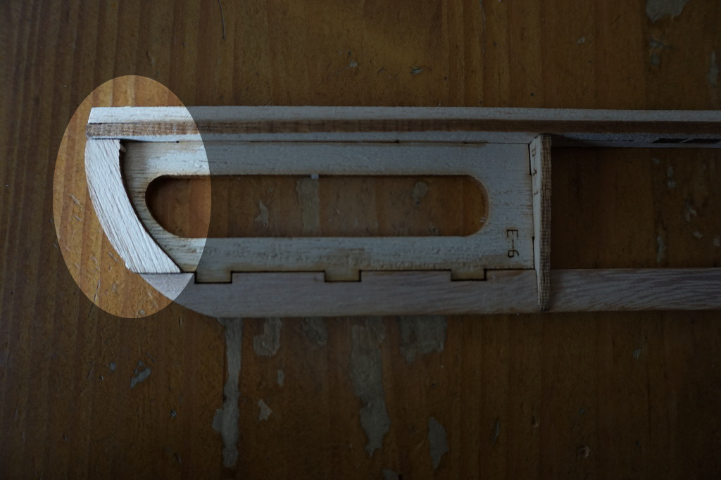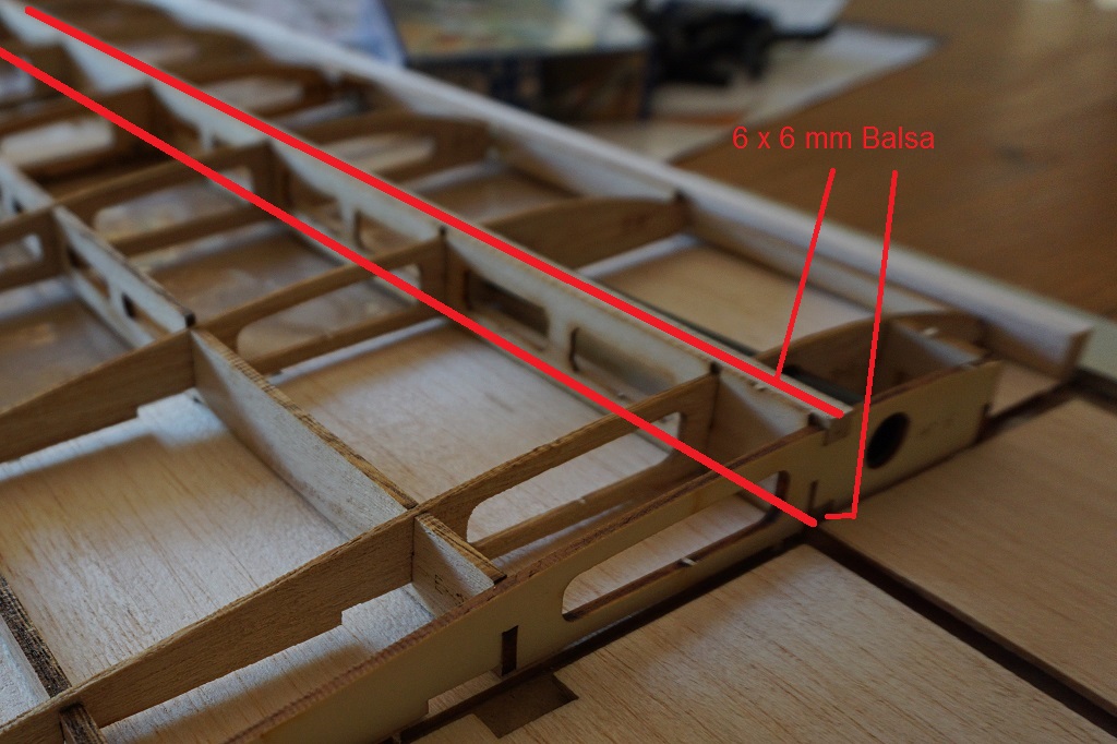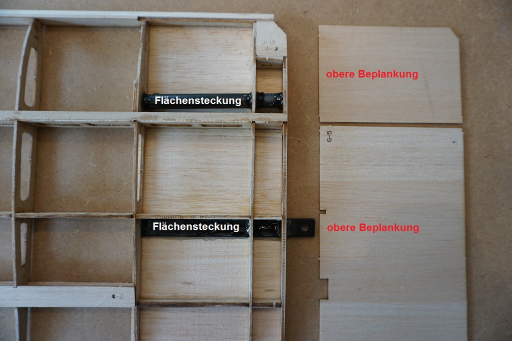 der innere Teil oben mit Balsaholz beplankt, so dass die Steckung in