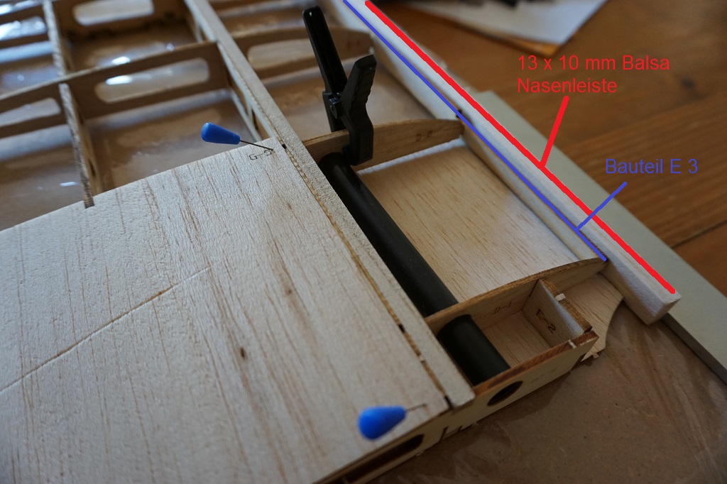 endgültig mit Weissleim verklebt. Die Tragflächensteckung