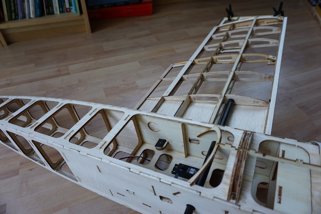 Die beiden Querruder sind in der Holzkonstruktion fertig.