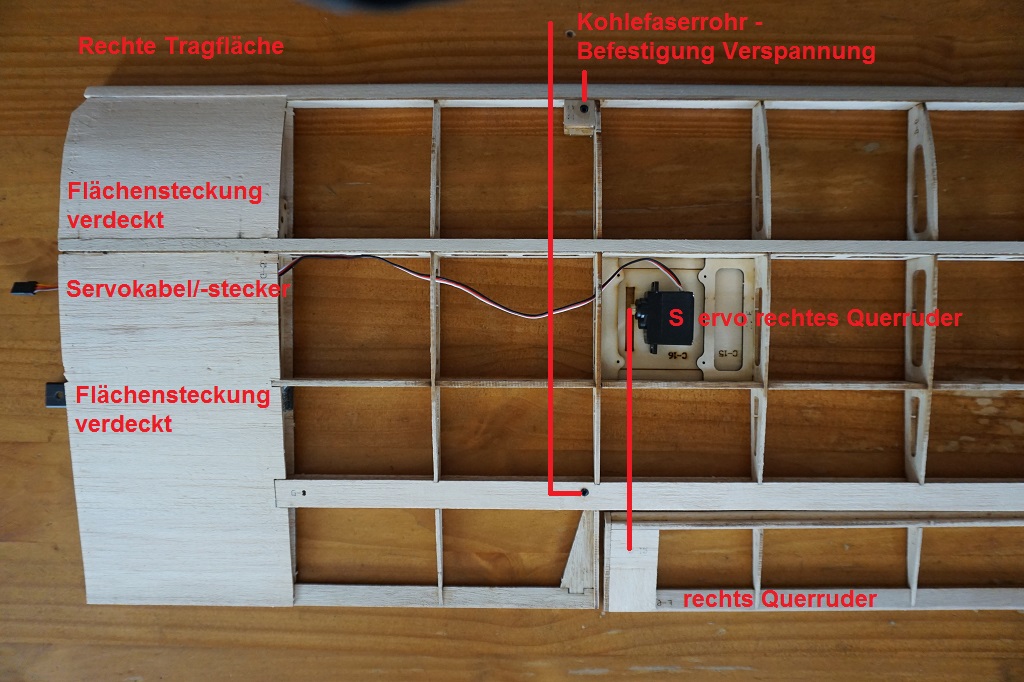 eingeharzt. Der Servoeinbau für die Steuerung der Querruder