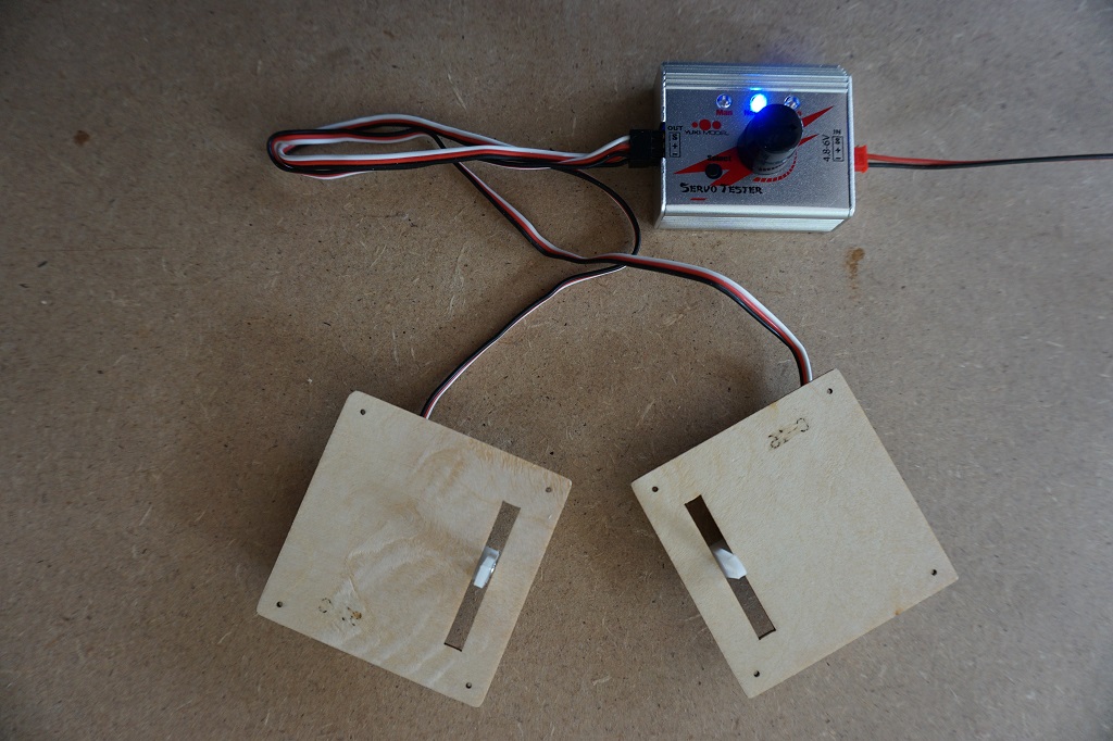 Servoarmen in einer 90Grad-Stellung versehen. Die beiden