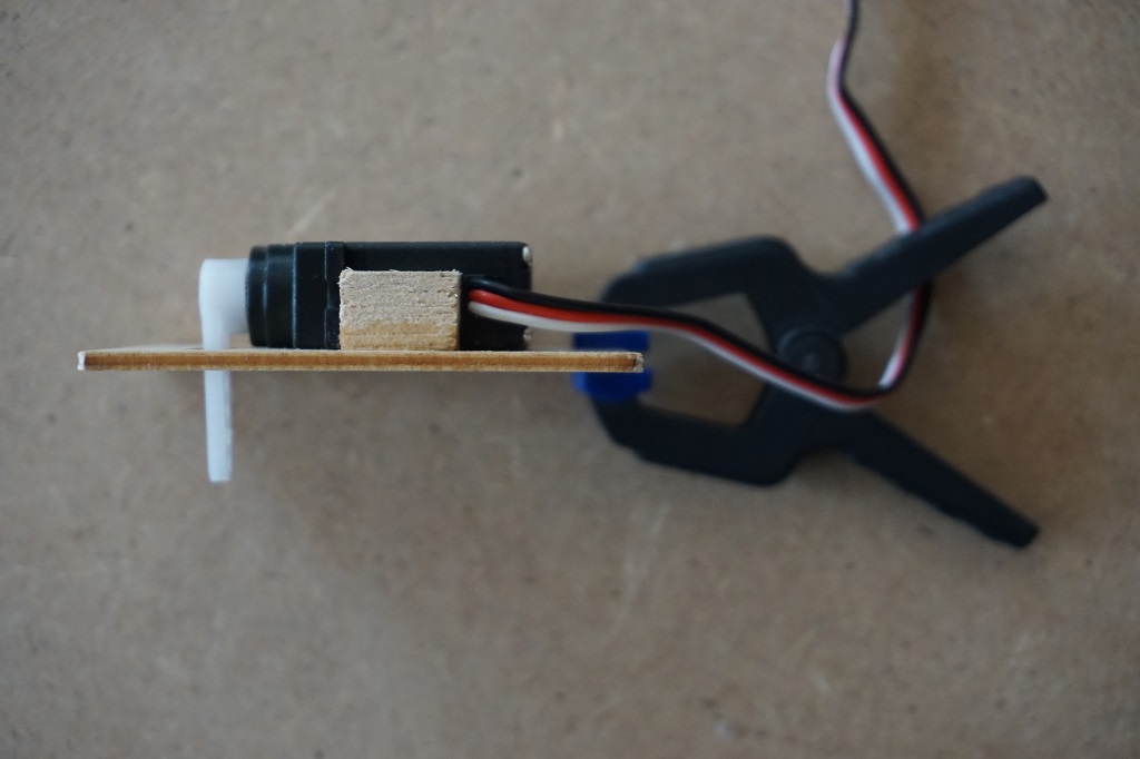 hier auf dem Foto nicht zu sehen. Das Servo-Montagebrettchen ist bei