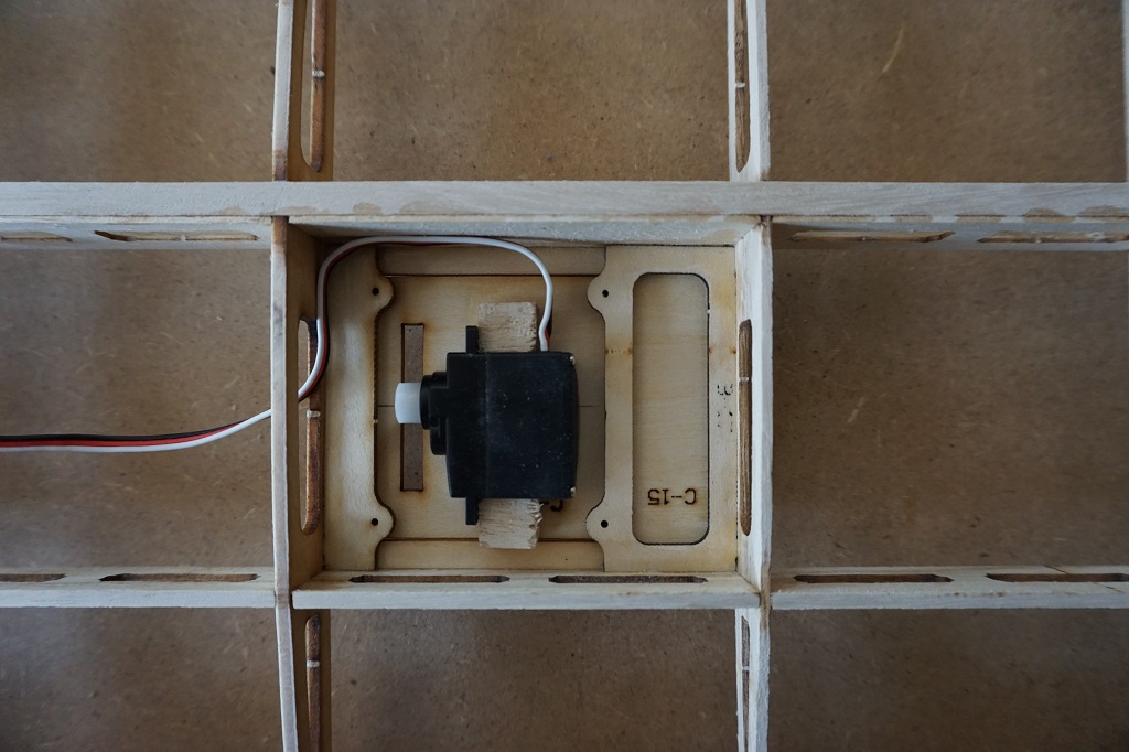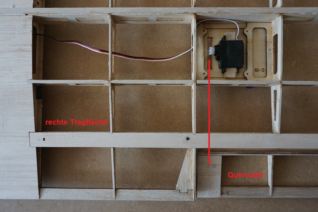 Das Querruder-Servo ist eingebaut; die Steuerung des