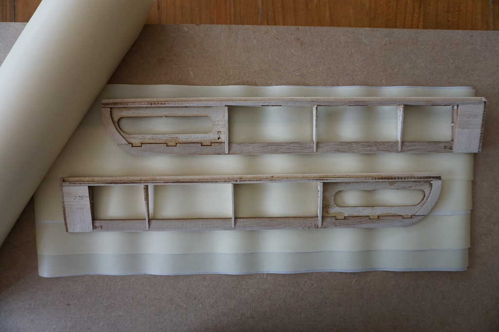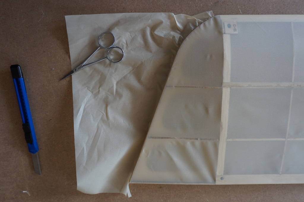 Flächen und Querruder werden mit Oratex Antik bespannt. Aus