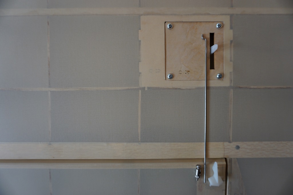der Bespannung ausgespart, frei zugänglich und damit leicht